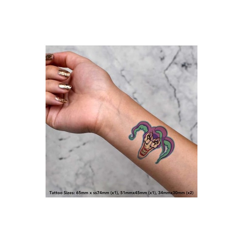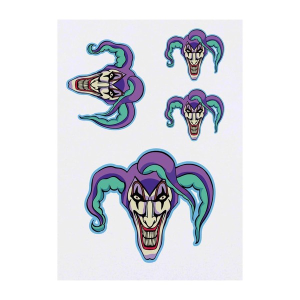 4 x 'Crazy Jester' Temporary Tattoos - Water Resistant, Skin-Safe, Non-Toxic Transfers, Mixed Sizes (TO00084242)