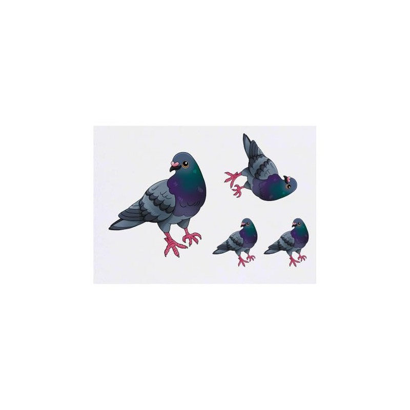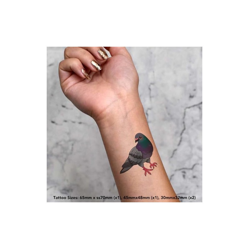 4 x 'Cute Pigeon' Temporary Tattoos - Water Resistant, Skin-Safe, Non-Toxic Transfers, Mixed Sizes (TO00079574)