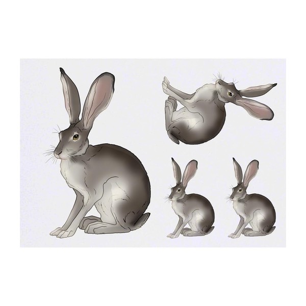 4 x 'Desert Hare' Temporary Tattoos - Water Resistant, Skin-Safe, Non-Toxic Transfers, Mixed Sizes (TO00080664)