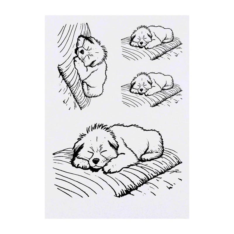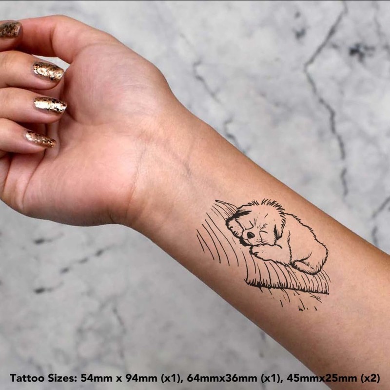 4 x 'Dog Sleeping on Blanket' Temporary Tattoos - Water Resistant, Skin-Safe, Non-Toxic Transfers, Mixed Sizes (TO00071350)