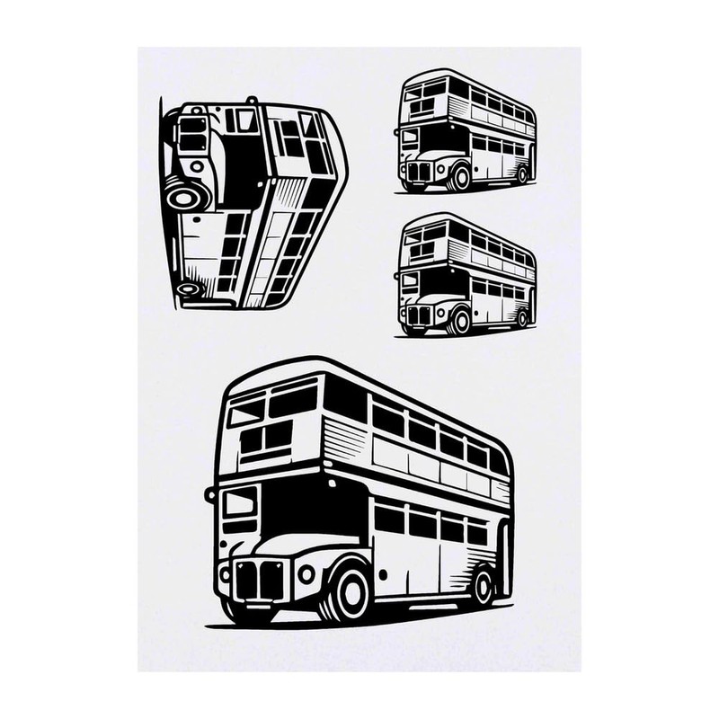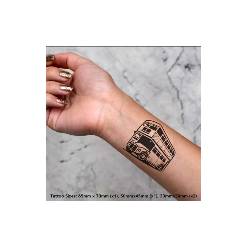 4 x 'Double Decker Bus' Temporary Tattoos - Water Resistant, Skin-Safe, Non-Toxic Transfers, Mixed Sizes (TO00074148)