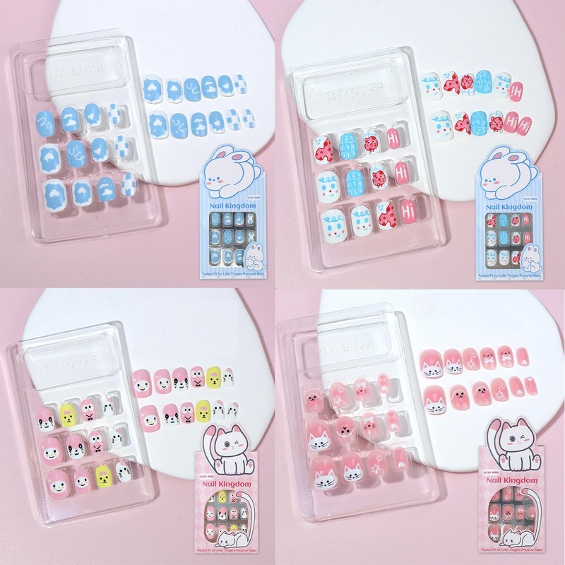 - Artificial nails especially for girls: Our press on nails for girls are printed with different cute animal patterns such as cats, rabbits and bright colours. Children can easily DIY different nail designs to adapt them to different clothing styles.
