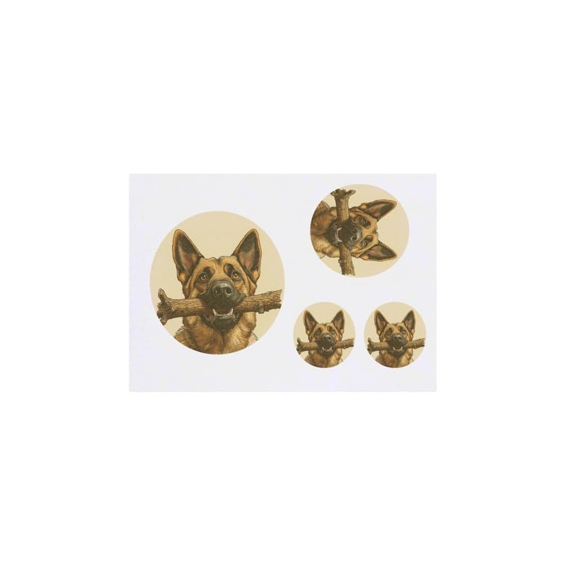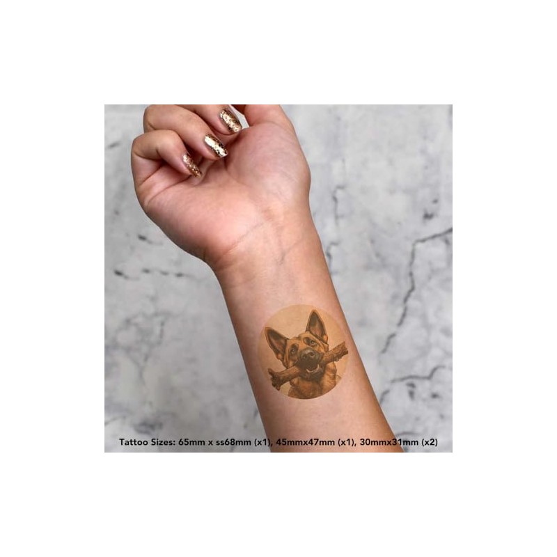 4 x 'German Shepherd with Stick Portrait' Temporary Tattoos - Water Resistant, Skin-Safe, Non-Toxic Transfers, Mixed Sizes (TO00083730)