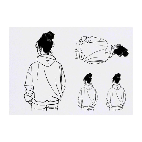4 x 'Girl in Hoodie Back View' Temporary Tattoos - Water Resistant, Skin-Safe, Non-Toxic Transfers, Mixed Sizes (TO00076268)