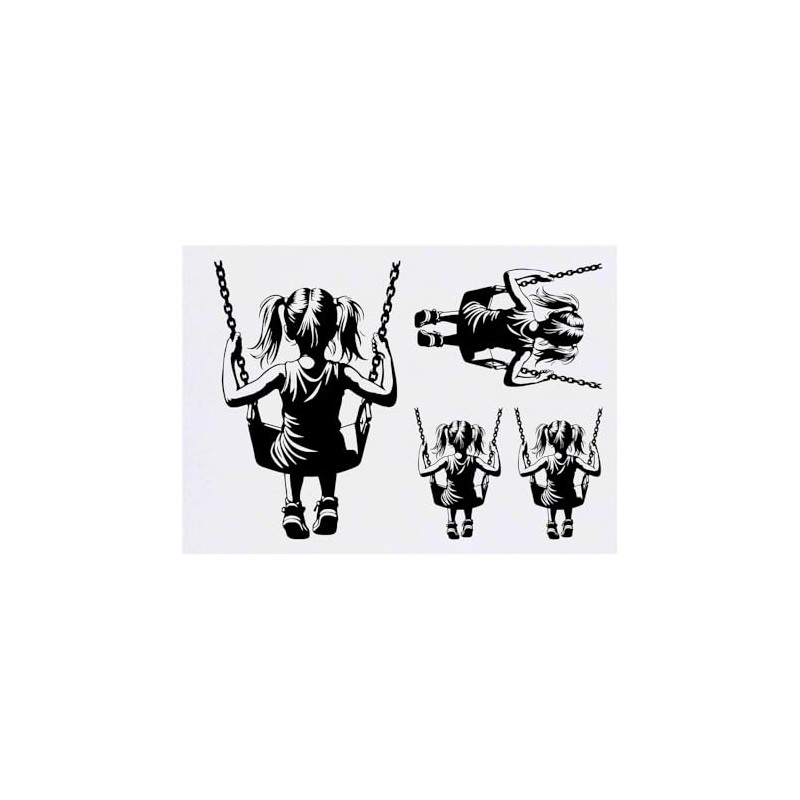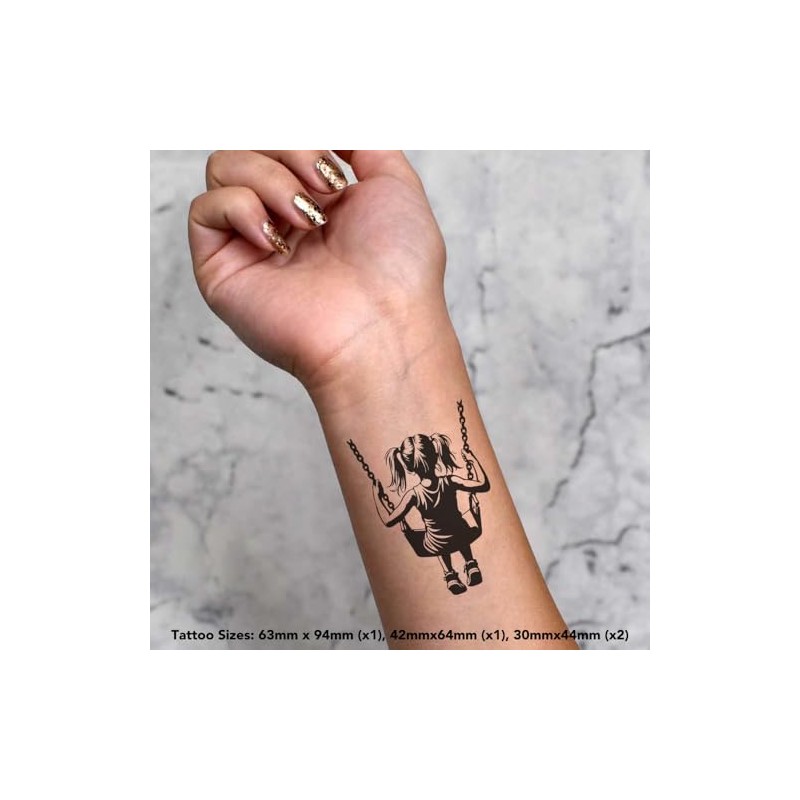 4 x 'Girl On A Swing' Temporary Tattoos - Water Resistant, Skin-Safe, Non-Toxic Transfers, Mixed Sizes (TO00075470)