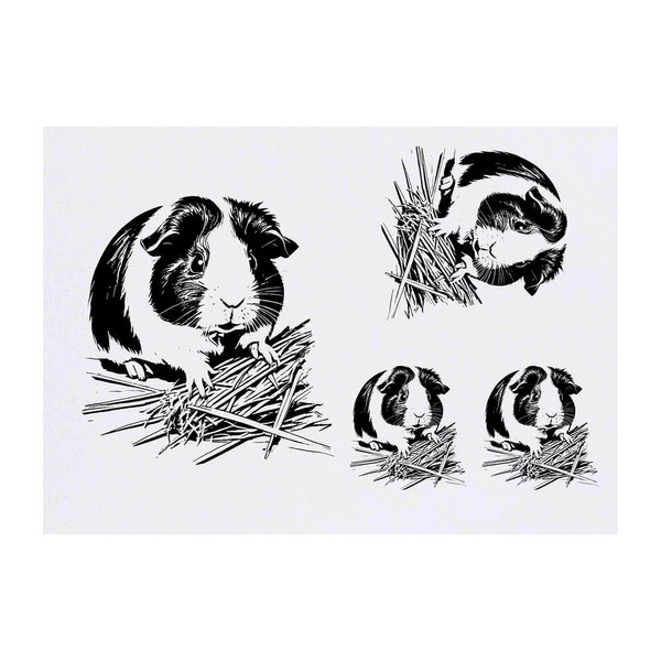 4 x 'Guinea Pig Munching On Hay' Temporary Tattoos - Water Resistant, Skin-Safe, Non-Toxic Transfers, Mixed Sizes (TO00069676)