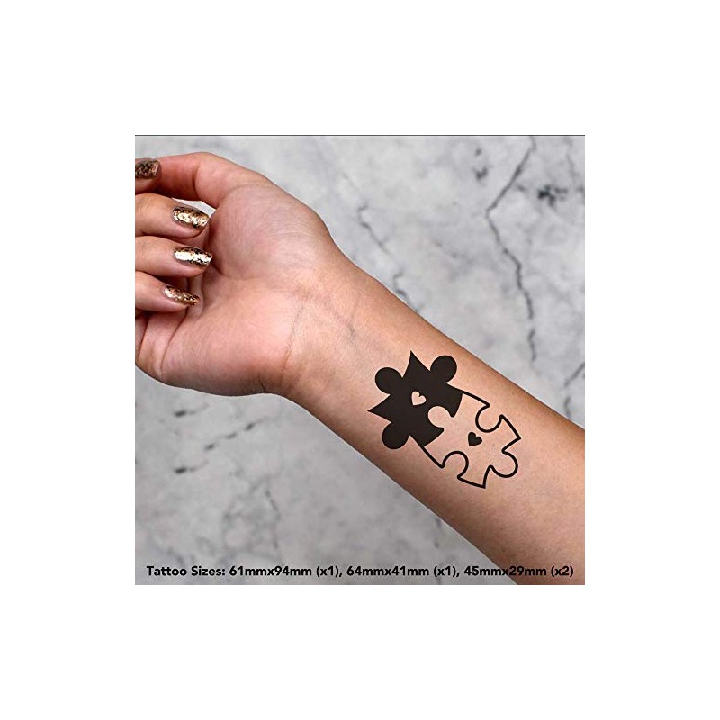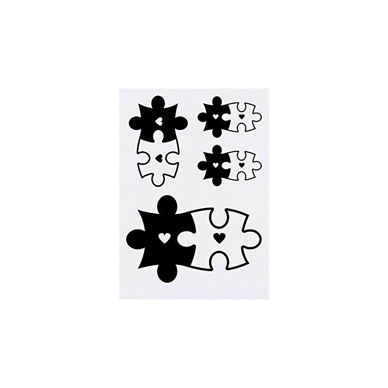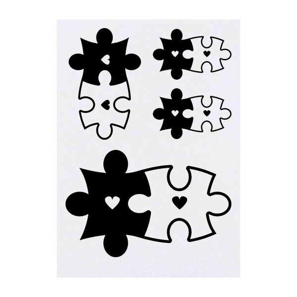 4 x 'Heart Jigsaw Pieces' Temporary Tattoos - Water Resistant, Skin-Safe, Non-Toxic Transfers, Mixed Sizes (TO00016207)