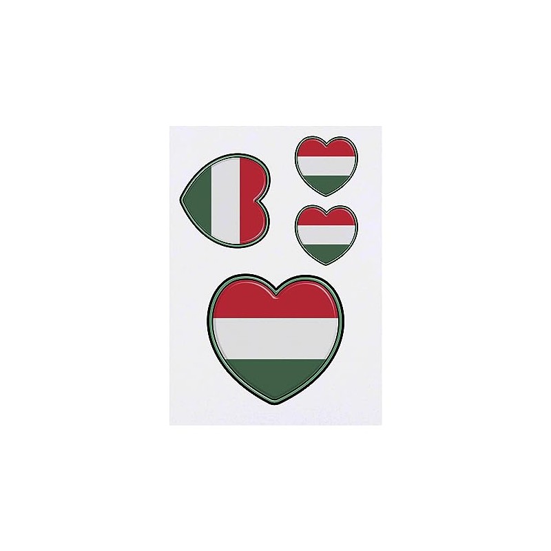 4 x 'Hungary Flag Heart' Temporary Tattoos - Water Resistant, Skin-Safe, Non-Toxic Transfers, Mixed Sizes (TO00062732)