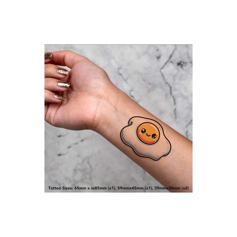 4 x 'Kawaii Fried Egg' Temporary Tattoos - Water Resistant, Skin-Safe, Non-Toxic Transfers, Mixed Sizes (TO00070674)