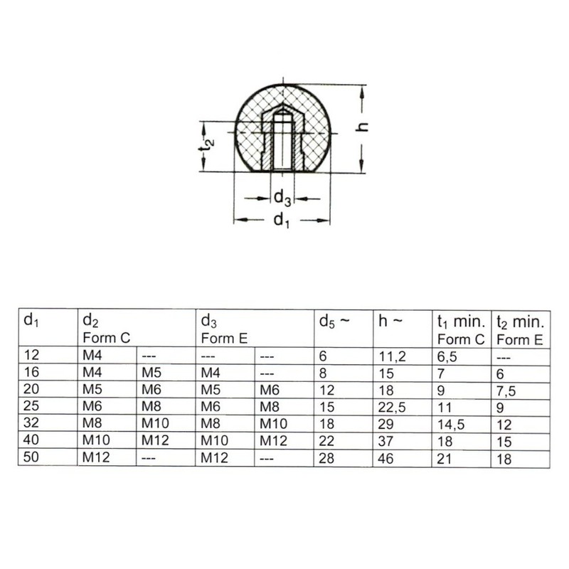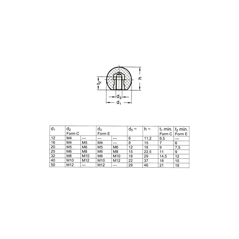 - WTB Ball knob M10 diameter 40 mm black DIN 319 with steel thread 4 pieces