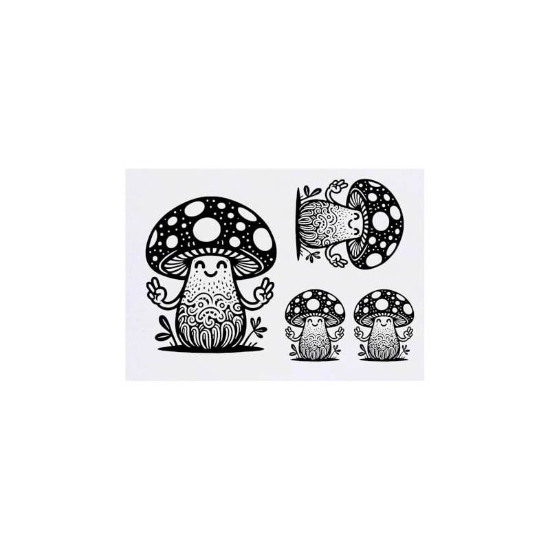 4 x 'Meditating Toadstool' Temporary Tattoos - Water Resistant, Skin-Safe, Non-Toxic Transfers, Mixed Sizes (TO00075838)