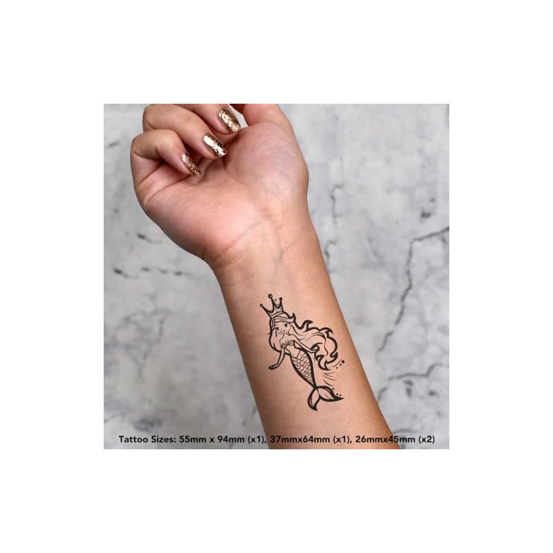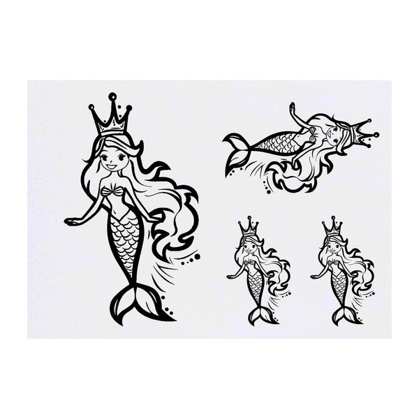 4 x 'Mermaid Princess' Temporary Tattoos - Water Resistant, Skin-Safe, Non-Toxic Transfers, Mixed Sizes (TO00073712)