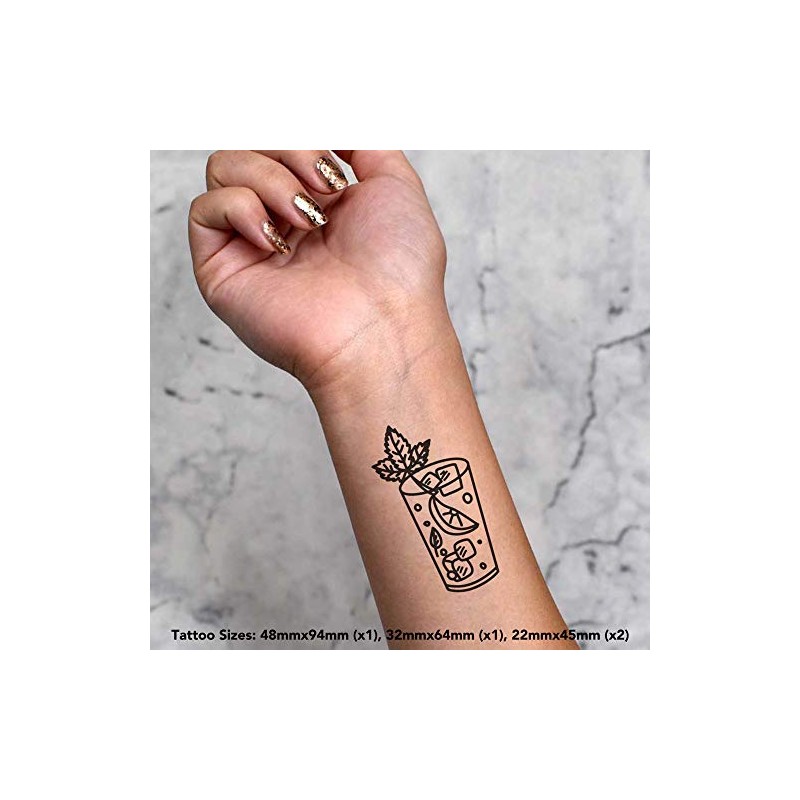 4 x 'Mojito Cocktail' Temporary Tattoos - Water Resistant, Skin-Safe, Non-Toxic Transfers, Mixed Sizes (TO00011767)