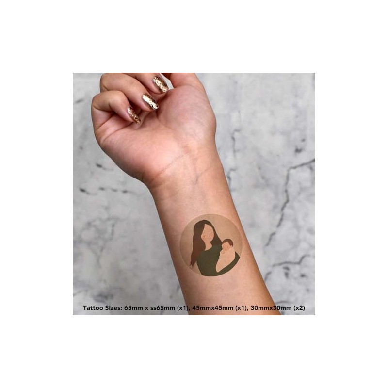 4 x 'Mother and Child' Temporary Tattoos - Water Resistant, Skin-Safe, Non-Toxic Transfers, Mixed Sizes (TO00080980)