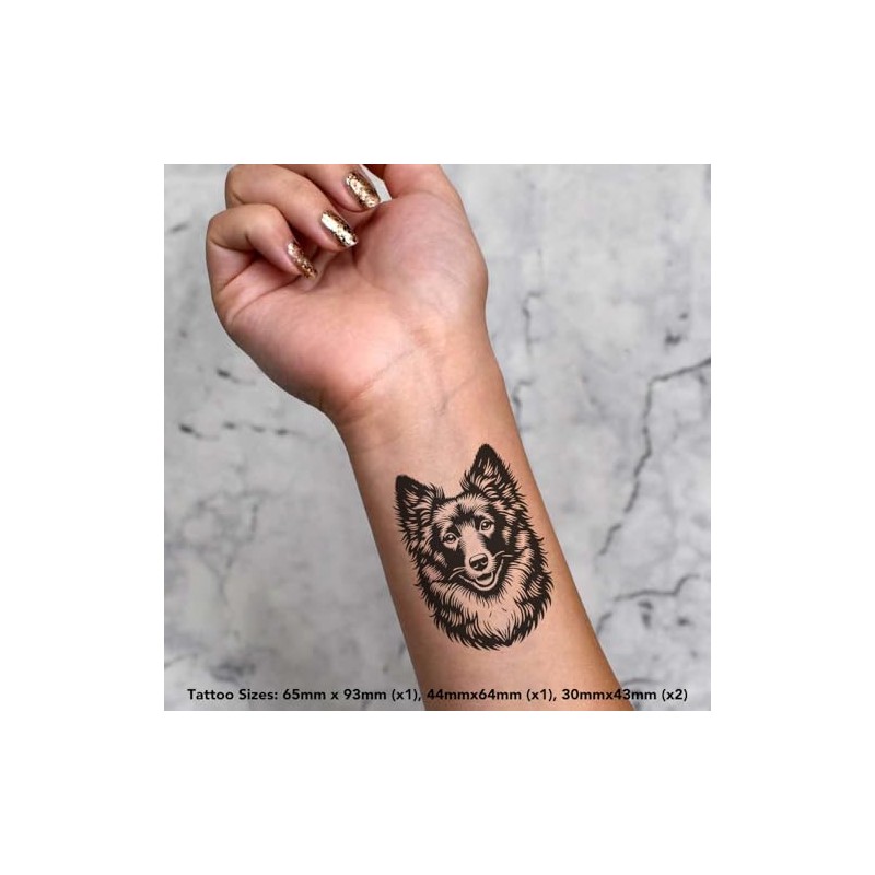 4 x 'Mudi' Temporary Tattoos - Water Resistant, Skin-Safe, Non-Toxic Transfers, Mixed Sizes (TO00075968)
