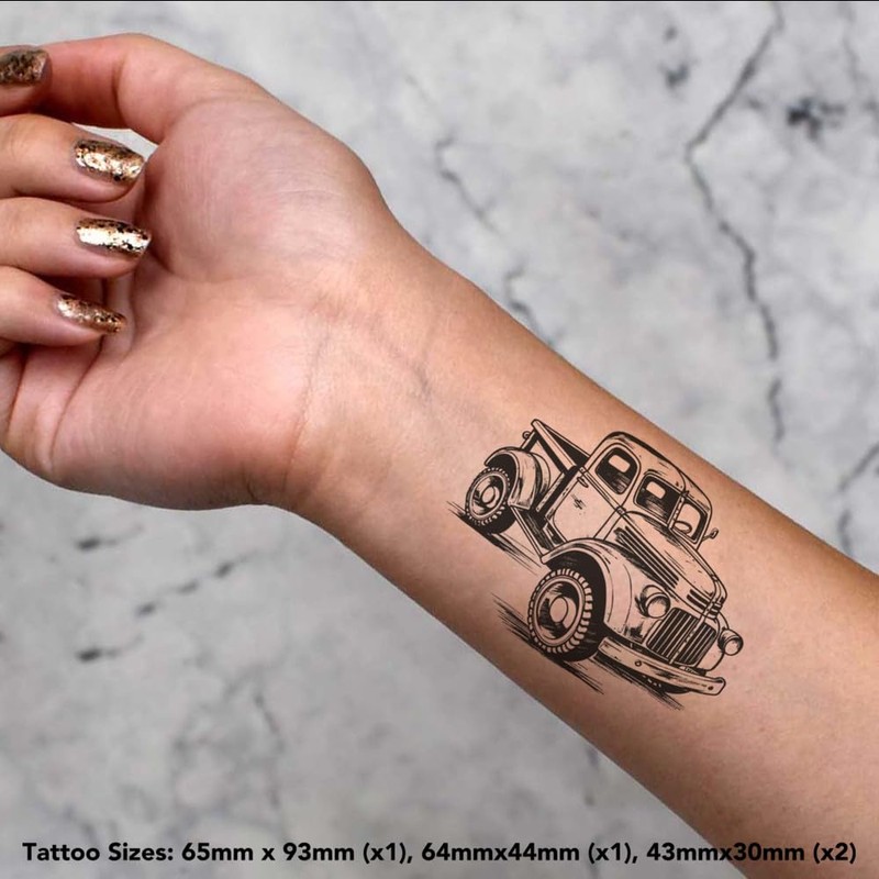4 x 'old truck' Temporary Tattoos - Water Resistant, Skin-Safe, Non-Toxic Transfers, Mixed Sizes (TO00060652)