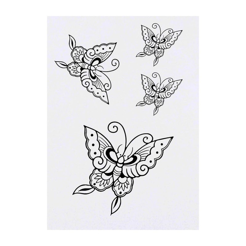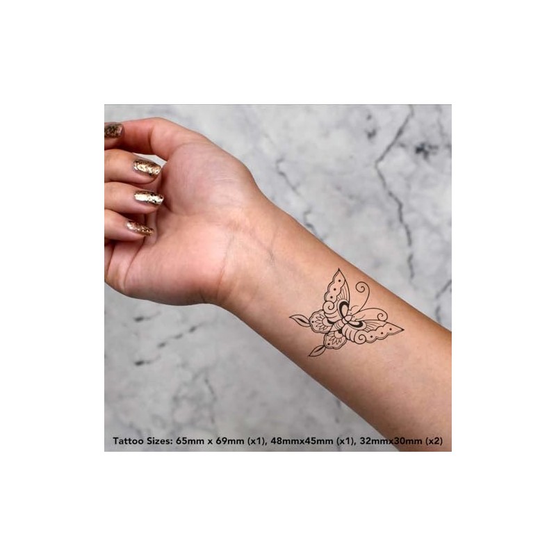 4 x 'Oriental Butterfly' Temporary Tattoos - Water Resistant, Skin-Safe, Non-Toxic Transfers, Mixed Sizes (TO00074632)