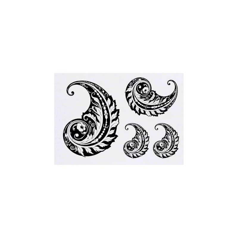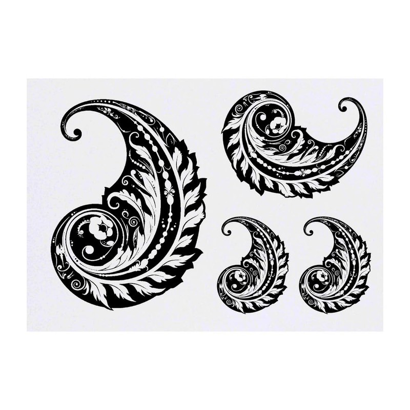 4 x 'Paisley Feather' Temporary Tattoos - Water Resistant, Skin-Safe, Non-Toxic Transfers, Mixed Sizes (TO00085634)