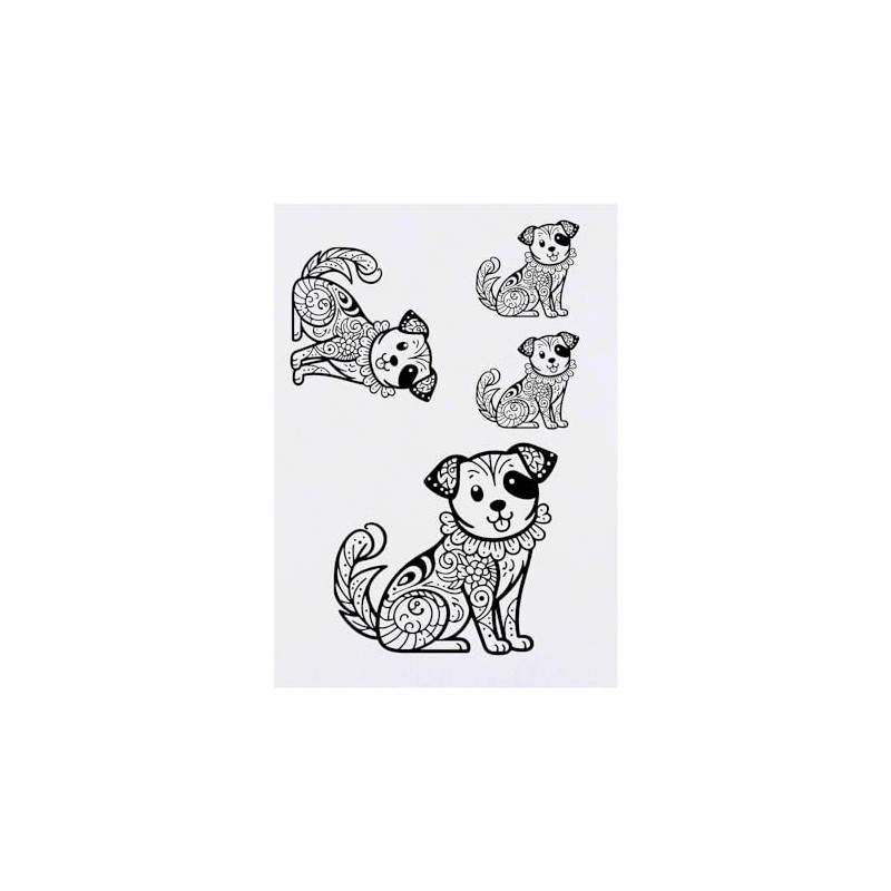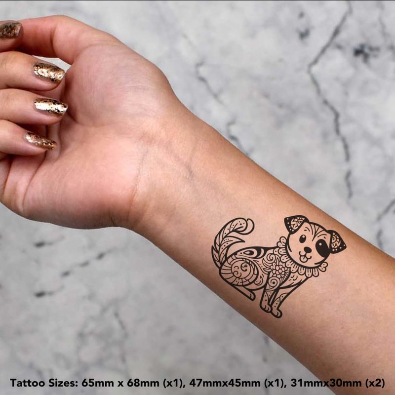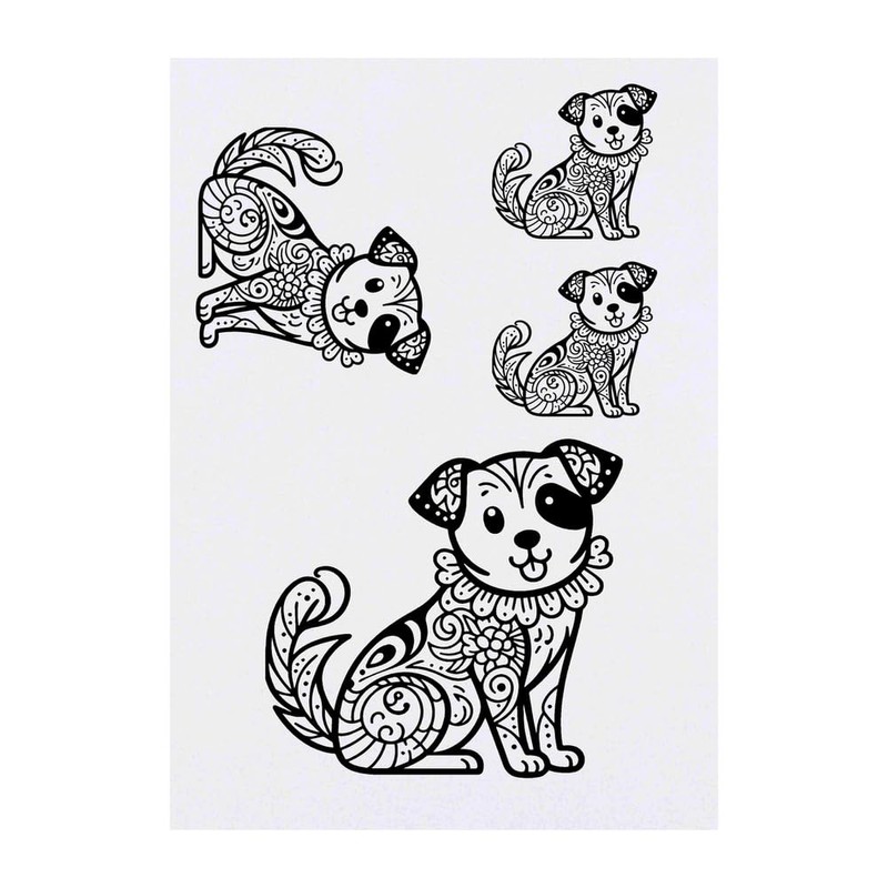 4 x 'Patterned Sitting Dog' Temporary Tattoos - Water Resistant, Skin-Safe, Non-Toxic Transfers, Mixed Sizes (TO00074194)