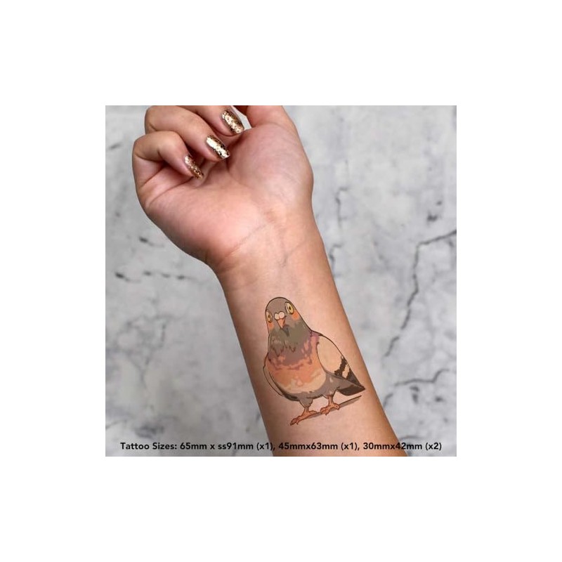 4 x 'Pigeon Standing' Temporary Tattoos - Water Resistant, Skin-Safe, Non-Toxic Transfers, Mixed Sizes (TO00085862)