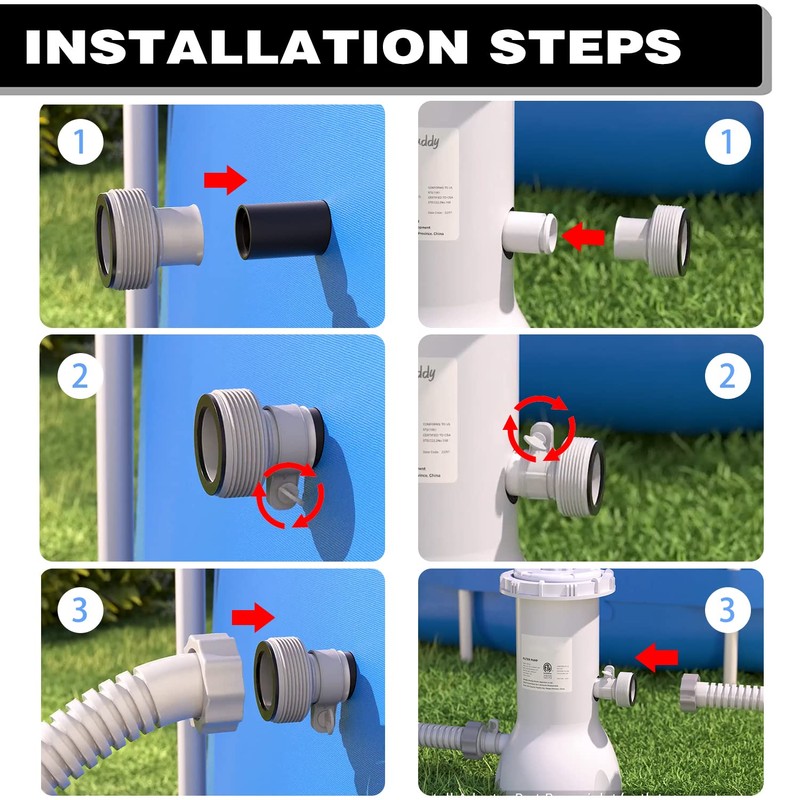- Hose adapter pool easy to install: the pool adapter is used to connect a 1.25 inch hose to a piston valve or filter pump. The small end connects to a 1.25 inch hose. The threaded end connects to a 1.5 inch piston valve or filter pump. Simply screw on. No need to buy extra hoses and avoid additional costs.