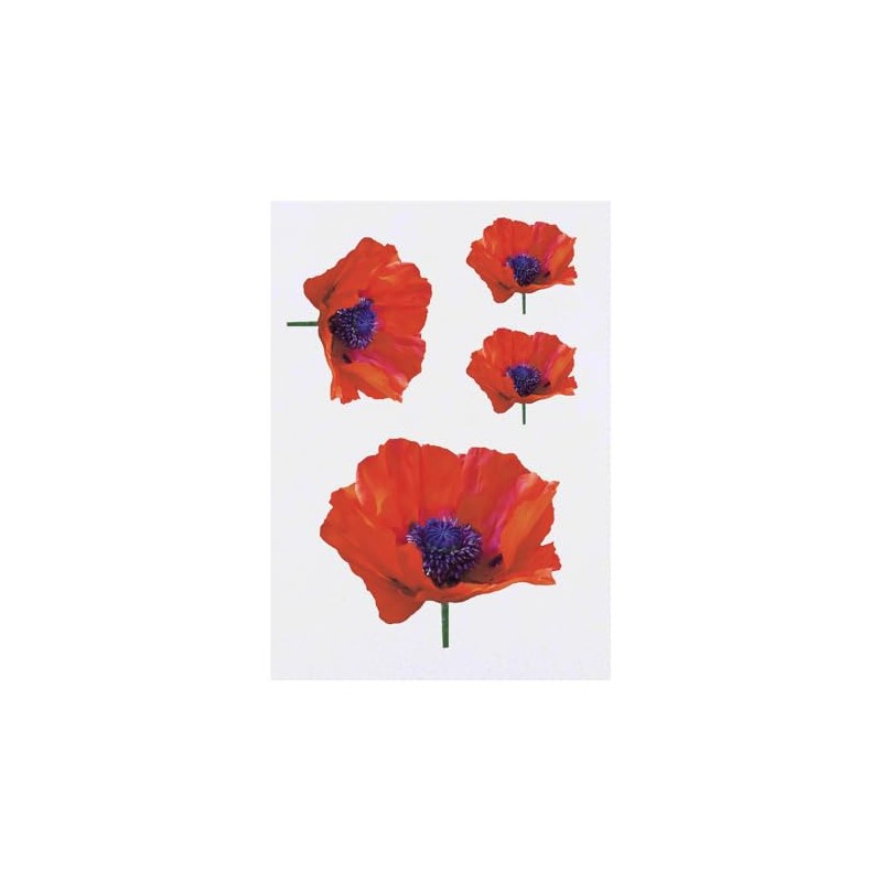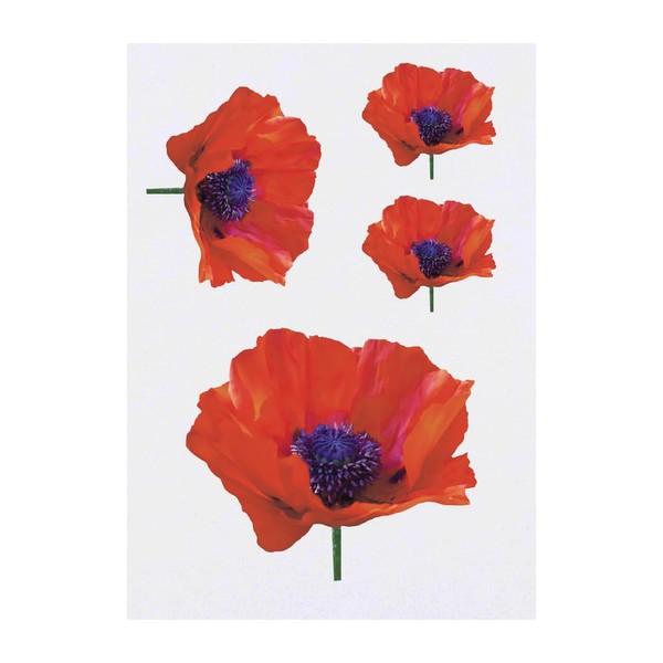 4 x 'Poppy Flower' Temporary Tattoos - Water Resistant, Skin-Safe, Non-Toxic Transfers, Mixed Sizes (TO00079240)