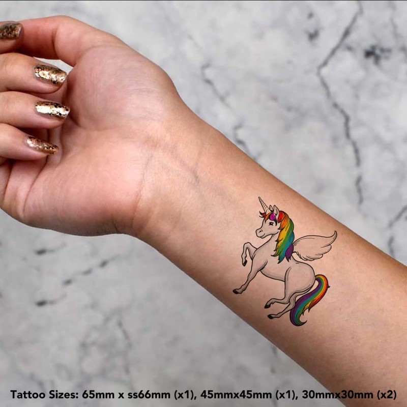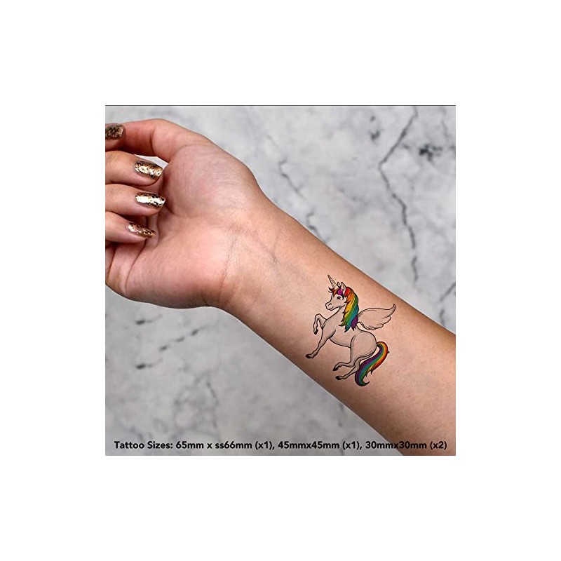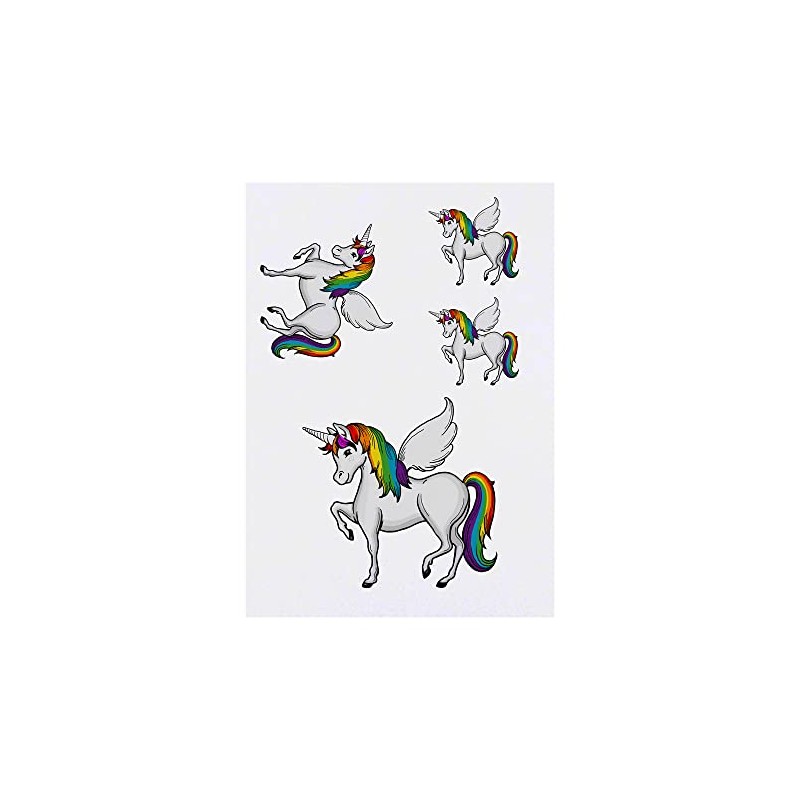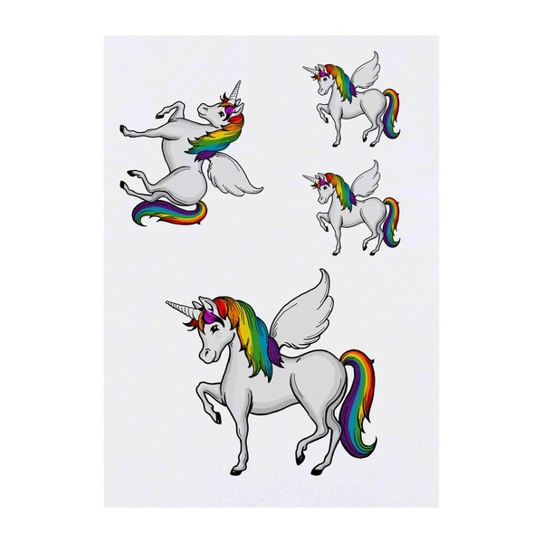 4 x 'Rainbow Unicorn' Temporary Tattoos - Water Resistant, Skin-Safe, Non-Toxic Transfers, Mixed Sizes (TO00056374)