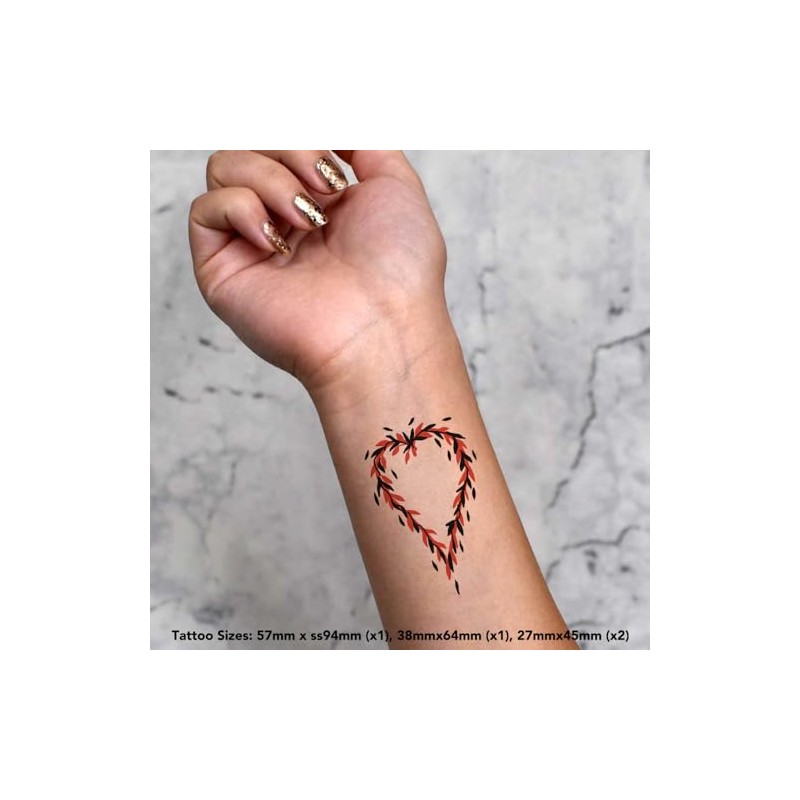 4 x 'Red And Black Heart Wreath' Temporary Tattoos - Water Resistant, Skin-Safe, Non-Toxic Transfers, Mixed Sizes (TO00073610)