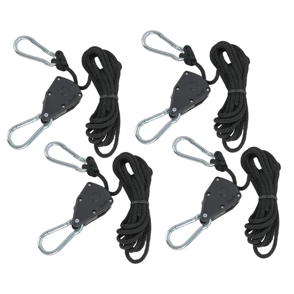 4 x Rope Ratchet with Hooks Load Capacity 68 kg 2.4 m Infinitely Adjustable Cable Pull with Ratchet Grow Lights Suspension Rope Tensioner Awning Attachment Rope Ratchet Storm Band Awning
