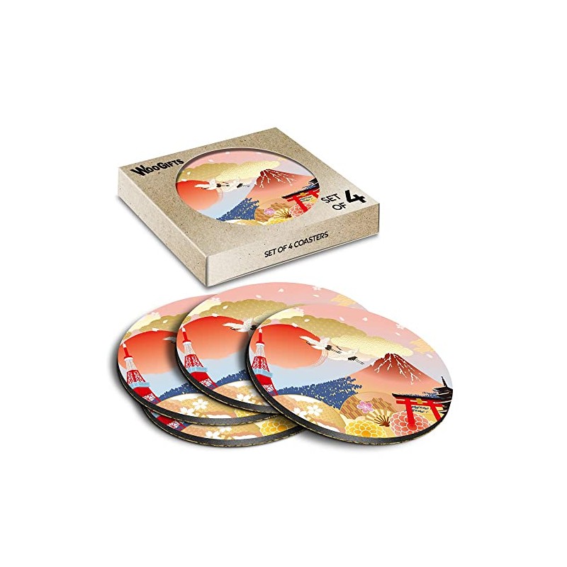 4 x Round Coasters - Japan Mount Fuji Illustration Cork Back MDF Glossy Tea Coffee Accessories #51248