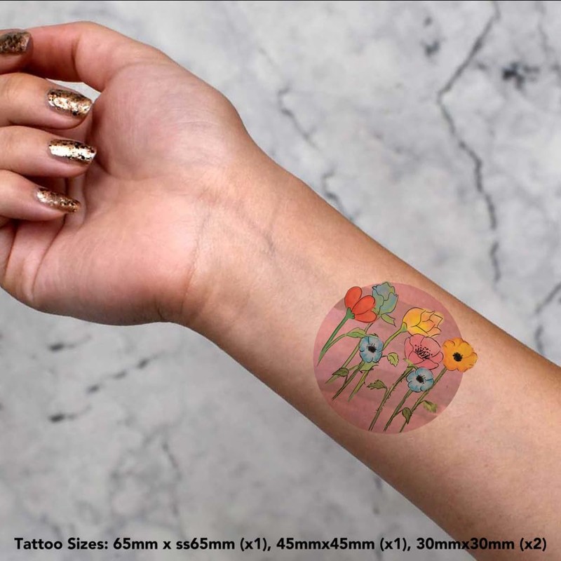 4 x 'Selection Of Wildflowers' Temporary Tattoos - Water Resistant, Skin-Safe, Non-Toxic Transfers, Mixed Sizes (TO00085642)