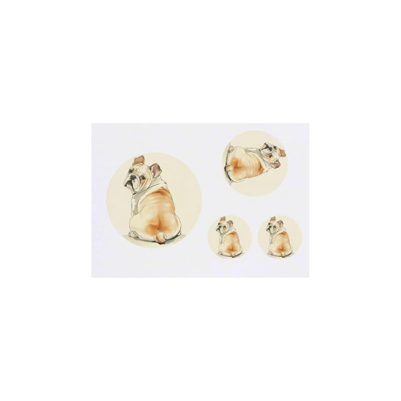 4 x 'Shy Bulldog Sitting' Temporary Tattoos - Water Resistant, Skin-Safe, Non-Toxic Transfers, Mixed Sizes (TO00084598)