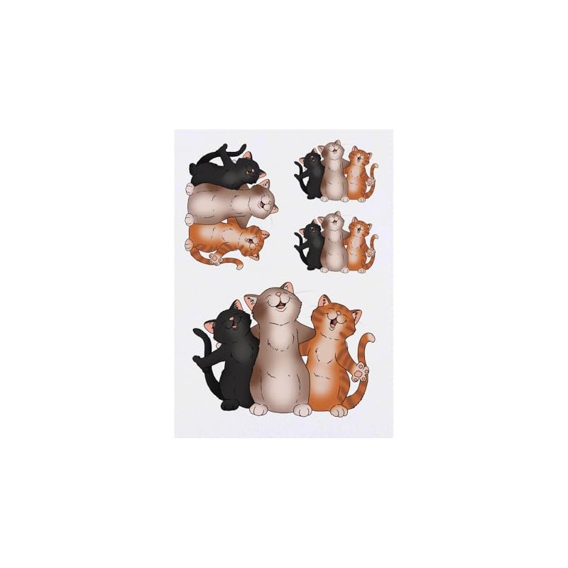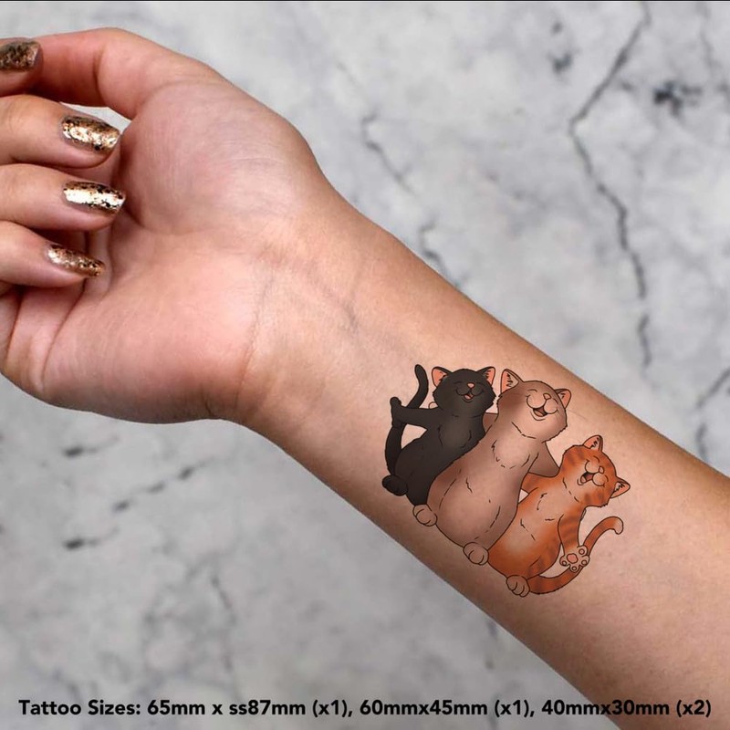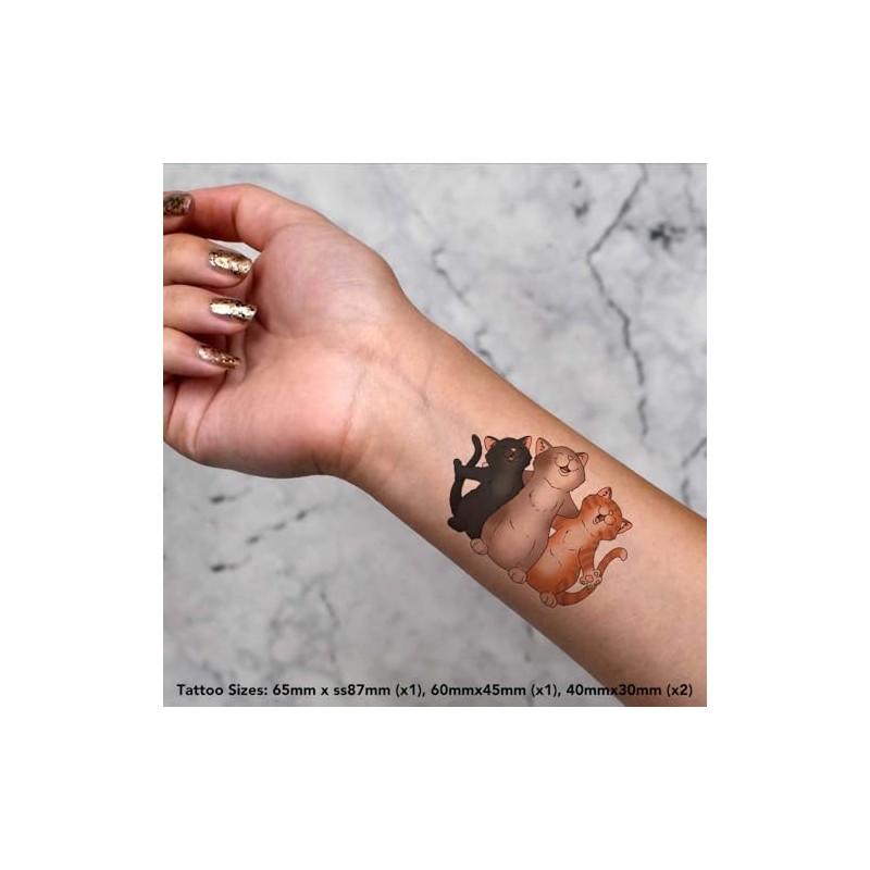 4 x 'Singing Cat Trio' Temporary Tattoos - Water Resistant, Skin-Safe, Non-Toxic Transfers, Mixed Sizes (TO00076952)