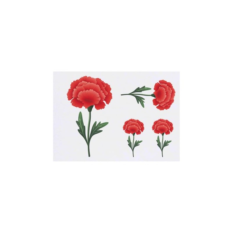 4 x 'Single Carnation Flower' Temporary Tattoos - Water Resistant, Skin-Safe, Non-Toxic Transfers, Mixed Sizes (TO00083414)