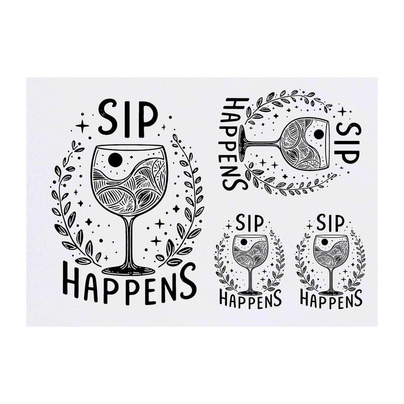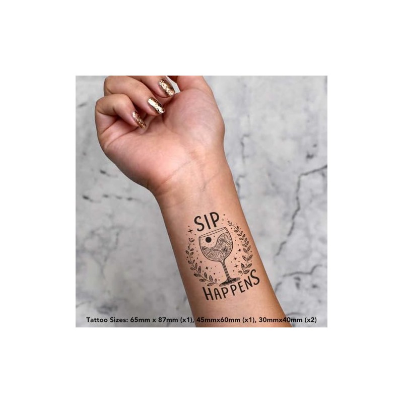 4 x 'Sip Happens' Temporary Tattoos - Water Resistant, Skin-Safe, Non-Toxic Transfers, Mixed Sizes (TO00077810)