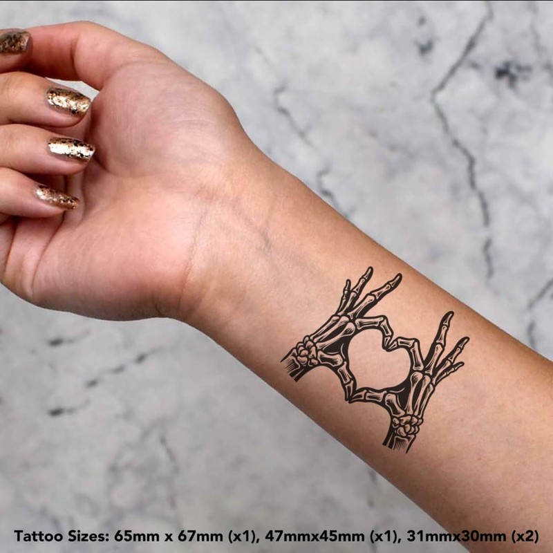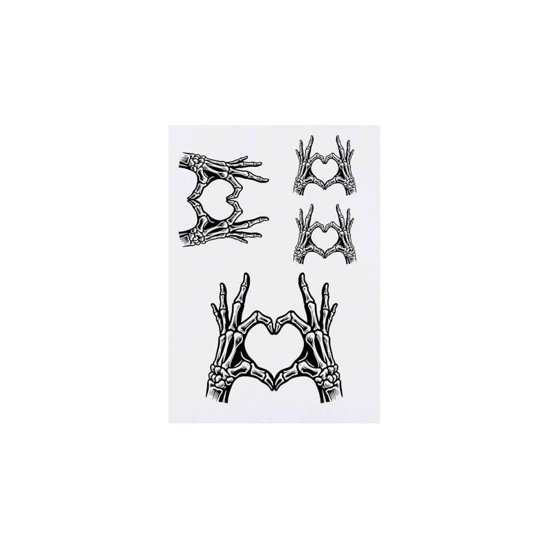 4 x 'Skeleton Hands Heart Sign' Temporary Tattoos - Water Resistant, Skin-Safe, Non-Toxic Transfers, Mixed Sizes (TO00075516)