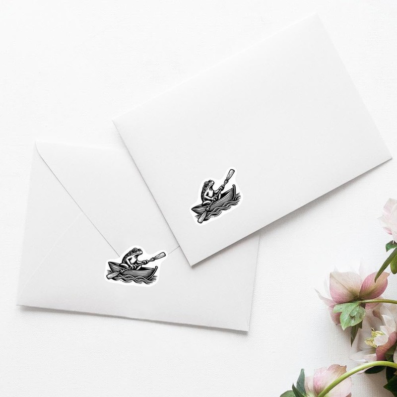 4 x Small 50mm 'Frog in A Rowing Boat' Permanent Sticker Decals for Cars/Windows/Bins/Walls etc (DW00119852)