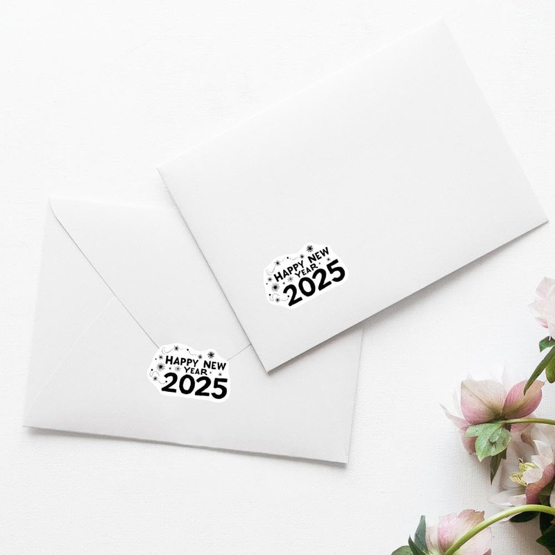 4 x Small 50mm 'Happy New Year 2025' Permanent Sticker Decals for Cars/Windows/Bins/Walls etc (DW00127772)
