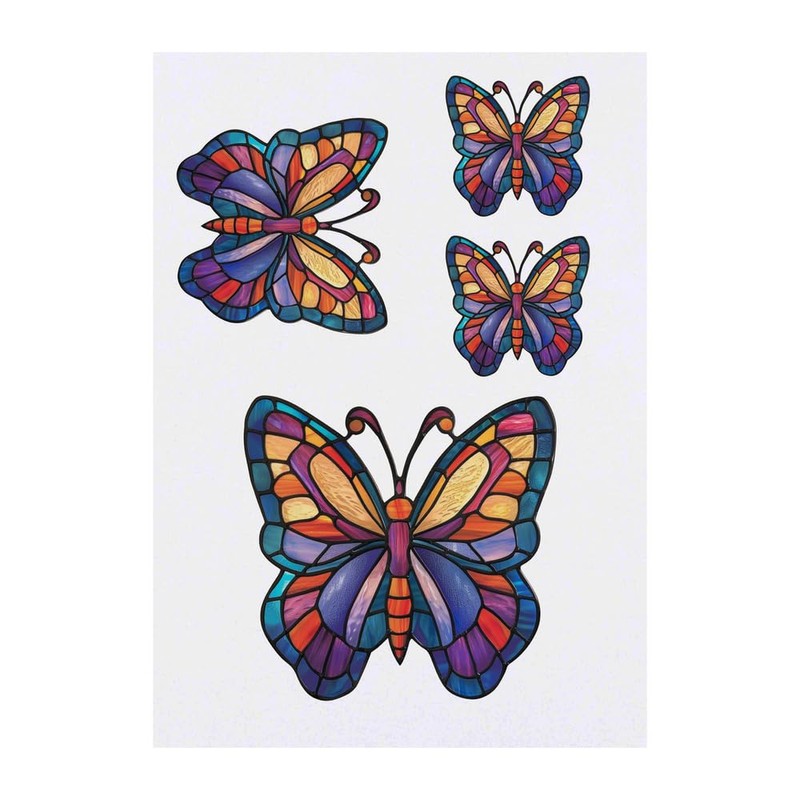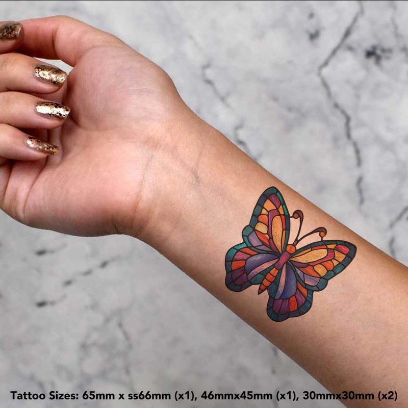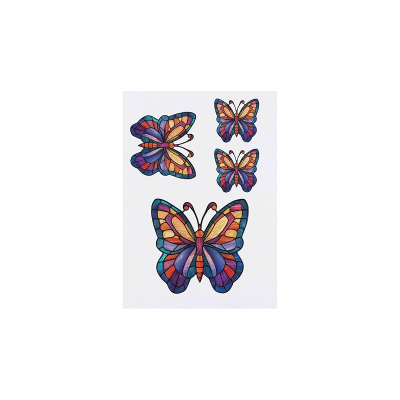 4 x 'Stained Glass Butterfly' Temporary Tattoos - Water Resistant, Skin-Safe, Non-Toxic Transfers, Mixed Sizes (TO00076324)