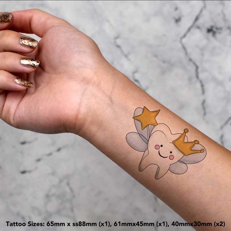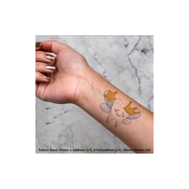 4 x 'Tooth Fairy' Temporary Tattoos - Water Resistant, Skin-Safe, Non-Toxic Transfers, Mixed Sizes (TO00071910)