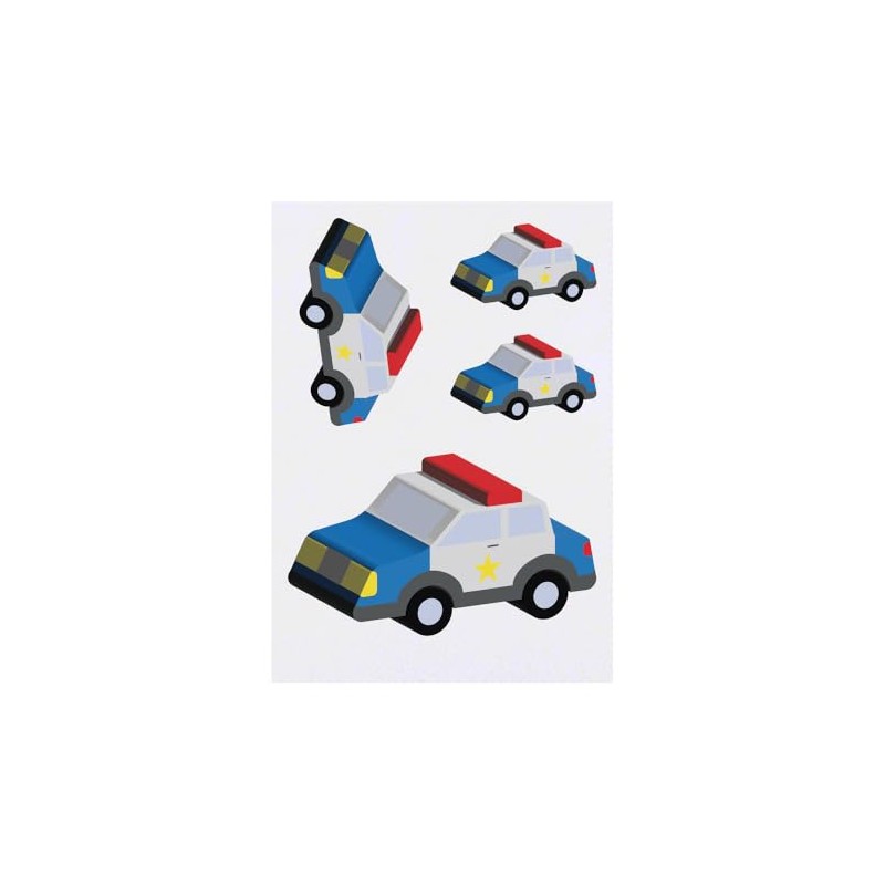 4 x 'Toy Police Car' Temporary Tattoos - Water Resistant, Skin-Safe, Non-Toxic Transfers, Mixed Sizes (TO00082254)