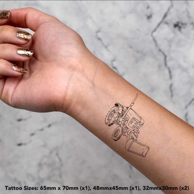 4 x 'Tractor with Digger Attachement' Temporary Tattoos - Water Resistant, Skin-Safe, Non-Toxic Transfers, Mixed Sizes (TO00075604)