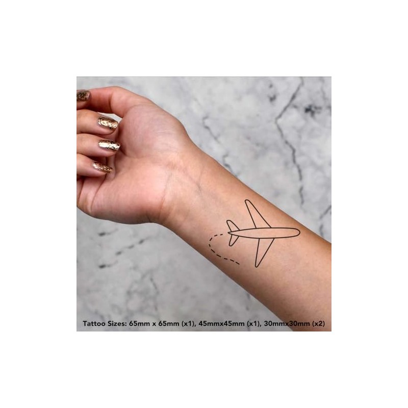 4 x 'Travel Airplane' Temporary Tattoos - Water Resistant, Skin-Safe, Non-Toxic Transfers, Mixed Sizes (TO00084716)