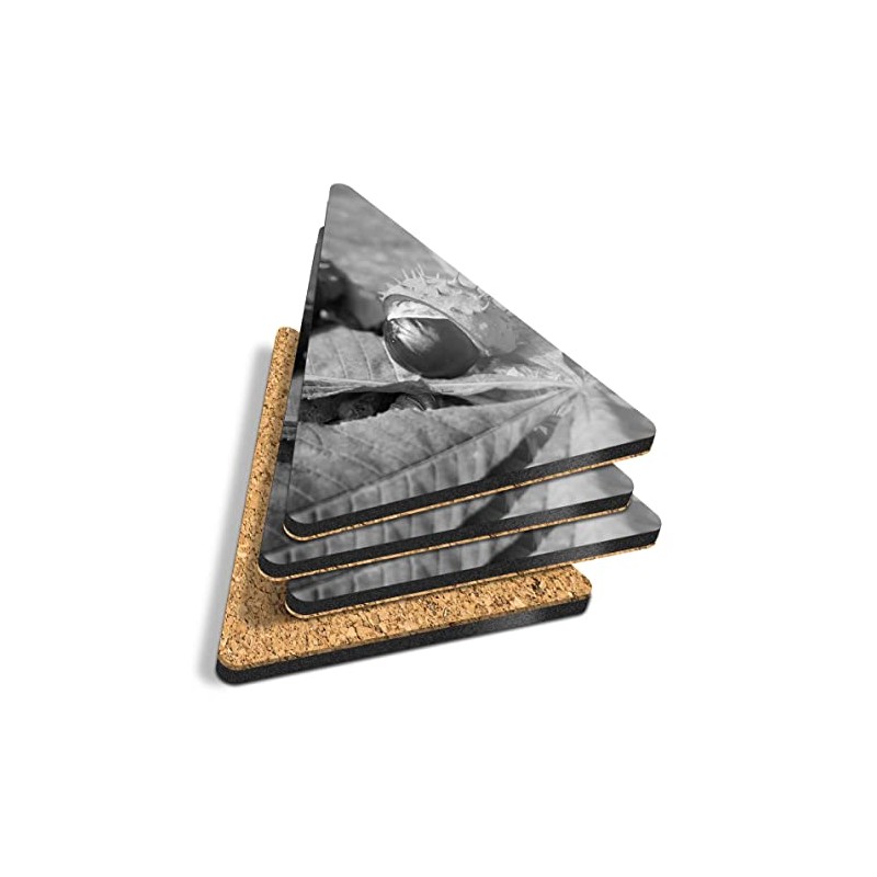 4 x Triangle Coasters - BW - Conker Horse Chestnut Tree Cork Backed MDF Glossy Tea Coffee Accessory #38083