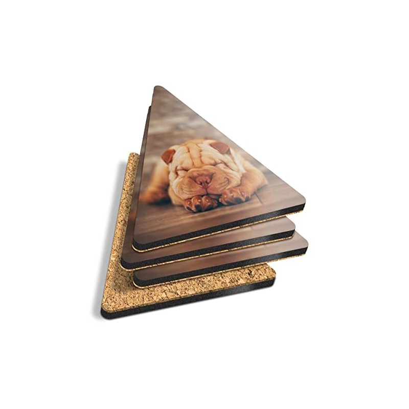 4 x Triangle Coasters - Shar Pei Dog Puppy Animal Pet Cork Backed MDF Glossy Tea Coffee Accessory #12680