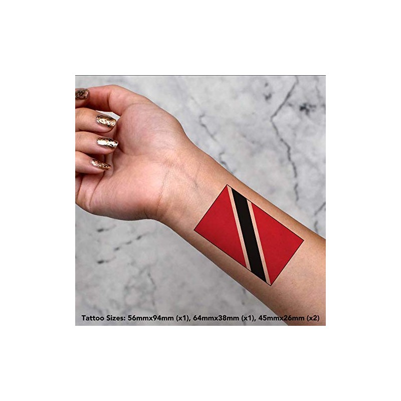 4 x 'Trinidad & Tobago Flag' Temporary Tattoos - Water Resistant, Skin-Safe, Non-Toxic Transfers, Mixed Sizes (TO00015066)