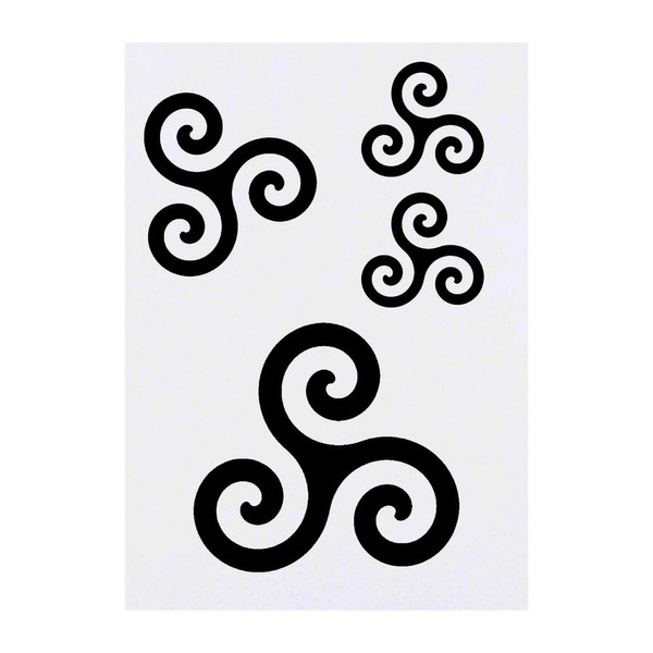4 x 'Triskelion Symbol' Temporary Tattoos - Water Resistant, Skin-Safe, Non-Toxic Transfers, Mixed Sizes (TO00080904)