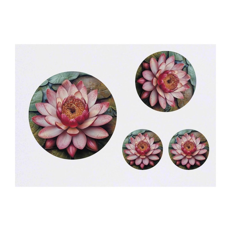 4 x 'Water Lily' Temporary Tattoos - Water Resistant, Skin-Safe, Non-Toxic Transfers, Mixed Sizes (TO00082936)