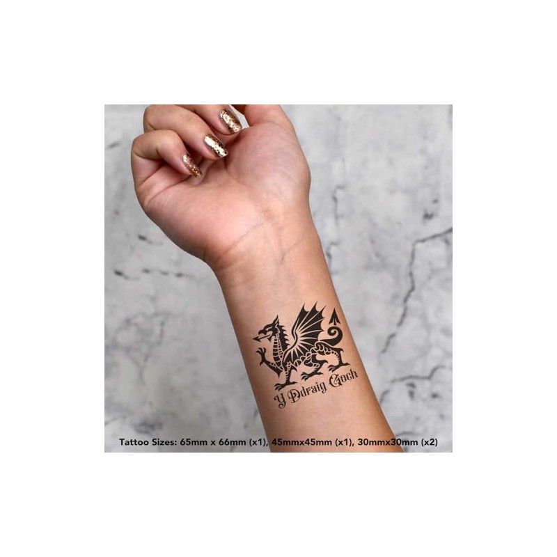 4 x 'Welsh Dragon' Temporary Tattoos - Water Resistant, Skin-Safe, Non-Toxic Transfers, Mixed Sizes (TO00076056)