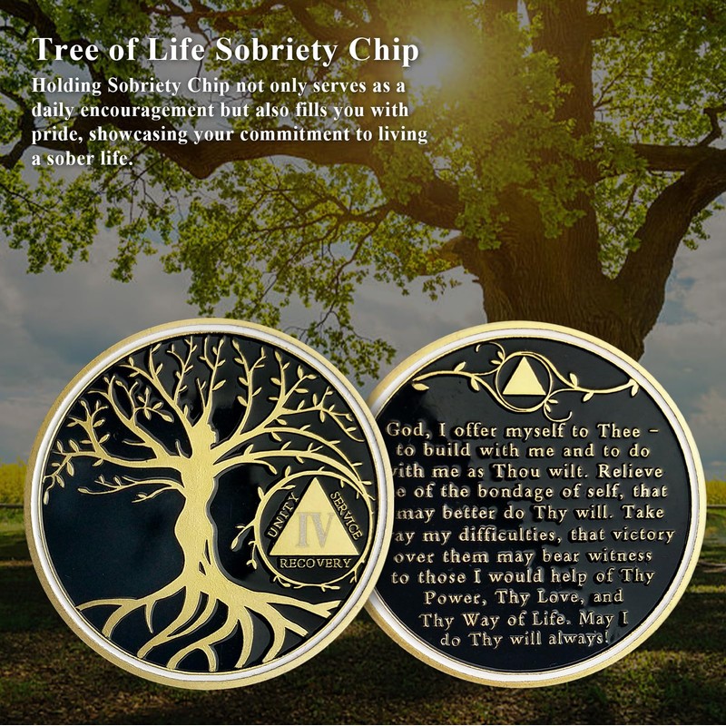 - More Options: There are 1-40 year Tree of Life sobriety chips for you to choose as a sobriety coin. Each chip is meticulously crafted with unique 3D craftsmanship, serving as a powerful reminder and source of support for you or your loved ones on the journey to recovery. Perfect as a thoughtful sobriety gift for both men and women